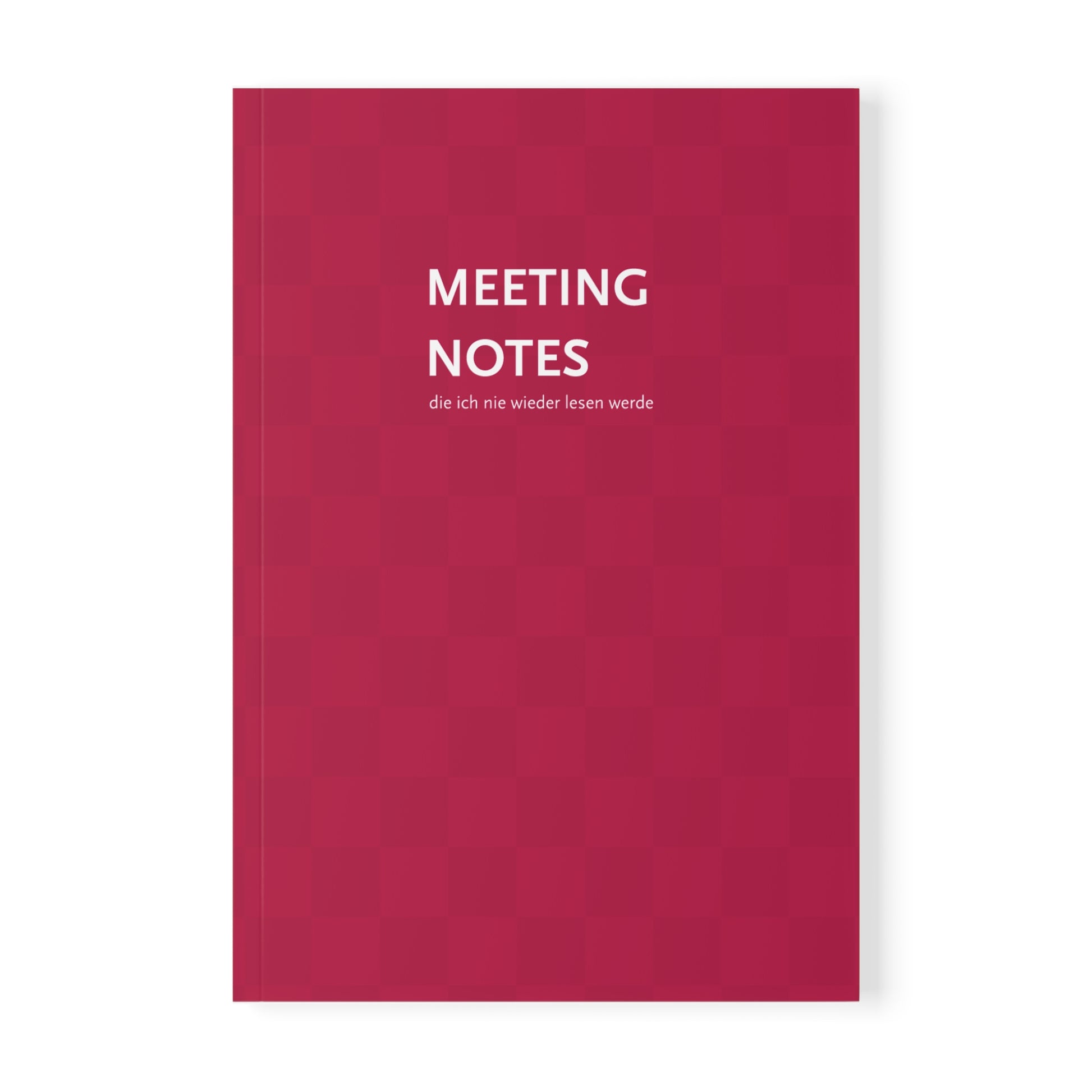 Notizbuch mit dem Spruch "Meeting Notes - die ich nie wieder lesen werde"